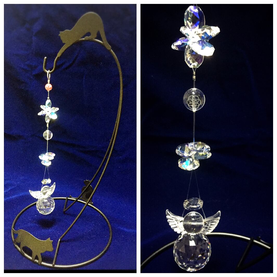 顔は水晶で羽もパワーストーンの水晶、アメジスト、ローズクォーツの三種類が選べます。